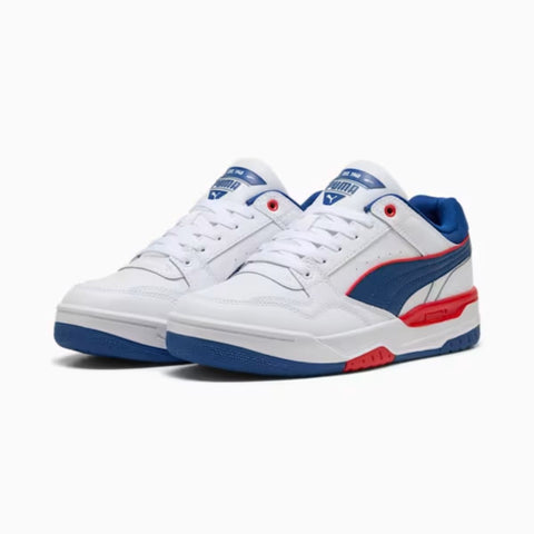 Descripción PUMA 400197-05 REBOUND RETRO Características Son una reinterpretación moderna de los clásicos del baloncesto de los años 80, fusionando estilo retro con tecnología actual para ofrecer comodidad y versatilidad. Estilo 400197-05 Marca PUMA Colores BLANCO/AZUL/ROJO